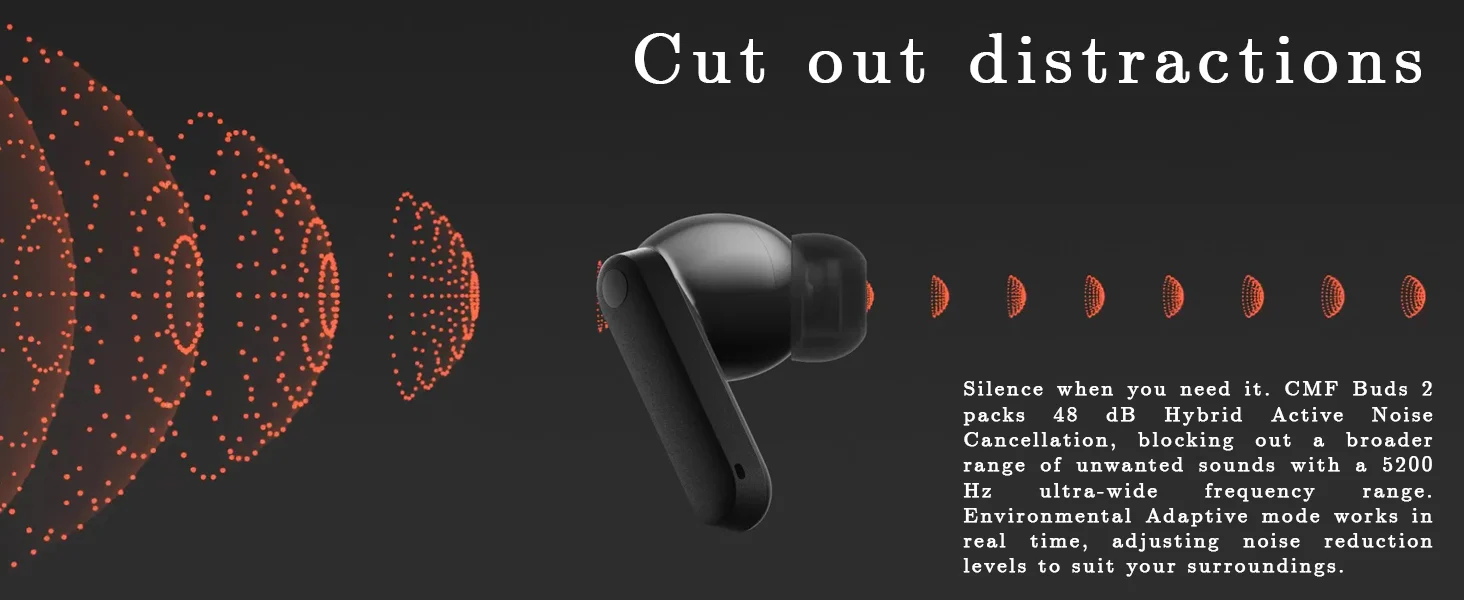Signature Nothing design with advanced 45 dB noise cancellation, a powerful 11 mm driver, and up to 42.5 hours of playtime.